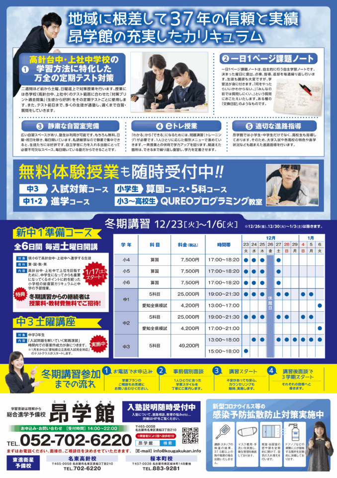 「令和7年度(2025年度)昂学館の冬期講習」のお知らせ